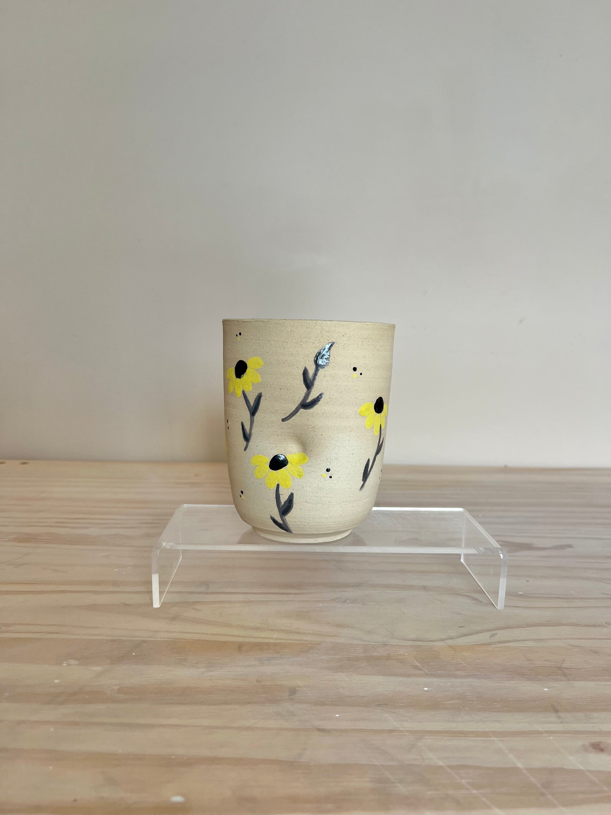 Handmade and hand painted thumbprint tumbler with glass straw (not pictured). Hold 14fl oz. Dishwasher and microwave safe but prefers to be hand washed.